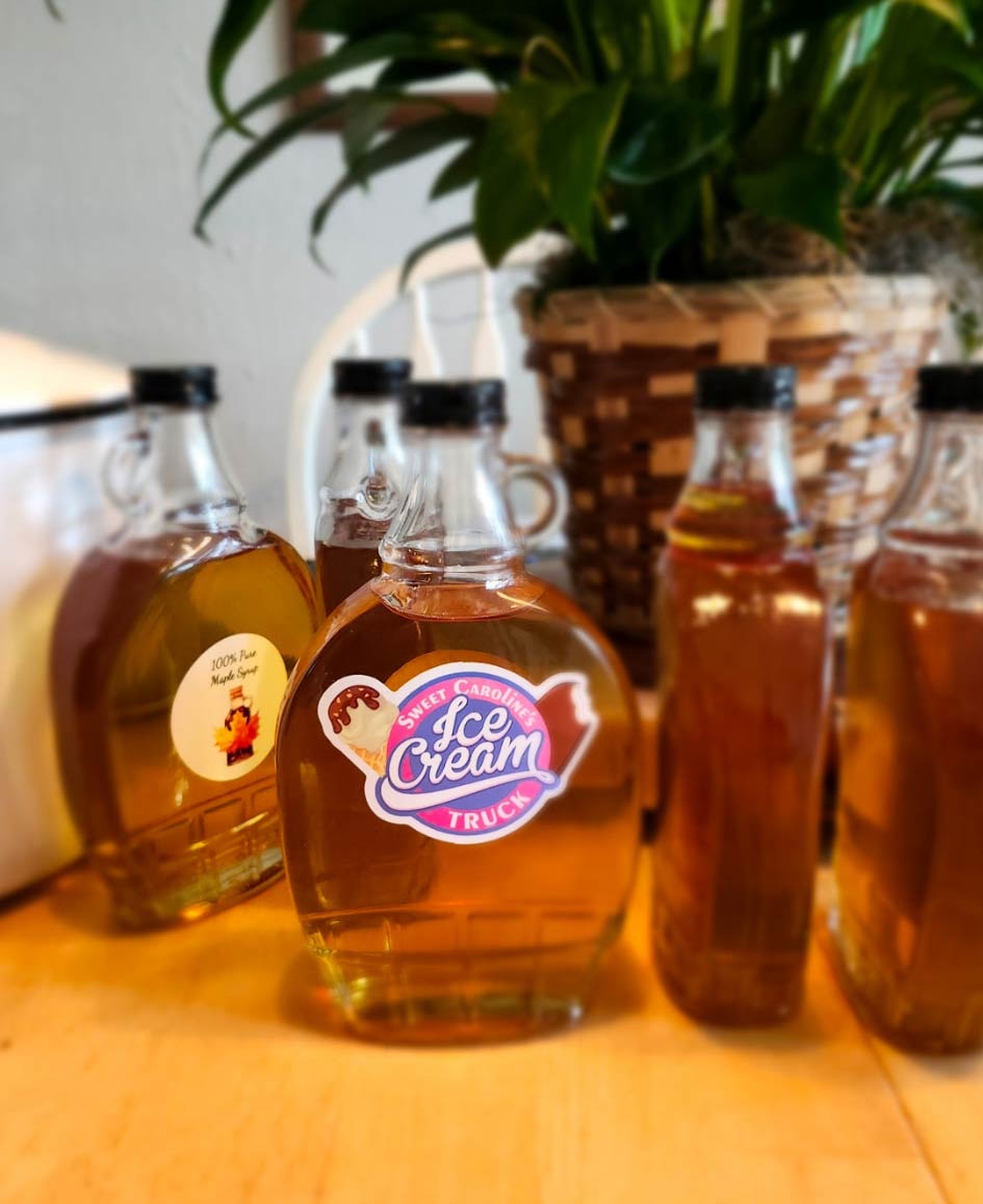 The name “Sweet Caroline’s Ice Cream Truck” came about from our daughter, Caroline. The Sweet Caroline’s brand started a few years ago when, collecting sap from our neighborhood trees, we boiled down and produced our own maple syrup! See “Sweet Caroline’s Small Batch Maple Syrup”